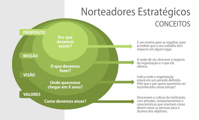 As orientações estratégicas são a tradução do posicionamento da Sefaz-RS, auxiliando na compreensão de onde e como se quer chegar. Elas norteiam o plano de trabalho e o processo decisório na instituição, sendo compostas por propósito, missão, visão, valores e objetivos estratégicos, que estão visualmente integrados no mapa estratégico da Secretaria.