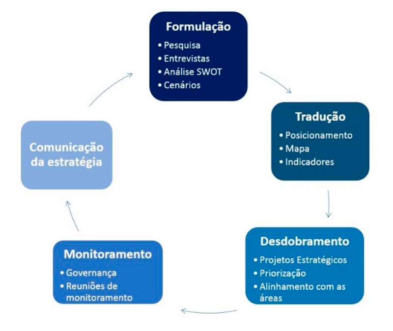 O método de elaboração e monitoramento da estratégia, implantado em 1997, vem sendo aprimorado a cada exercício e, na gestão 2015-2018, passou por uma reformulação. O redesenho do processo resultou em cinco subprocessos:
